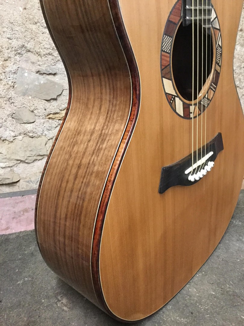 RedCedar sound board with heat bent pliage and aged shellac finish